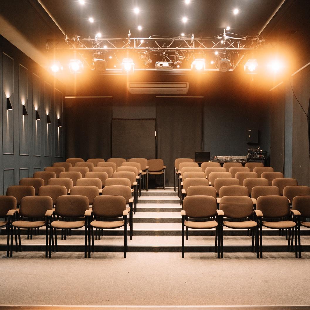 Наш камерный театр — это пространство для живого, близкого контакта со зрителем. Зал рассчитан до 60 посадочных мест. Профессиональный звук, свет, проектор и театральный реквизит. Формат идеально подходит для спектаклей, перформансов, читок, музыкальных выступлений и творческих встреч. Камерность пространства позволяет событиям звучать глубже, а зрителям — чувствовать себя не наблюдателями, а участниками происходящего.
